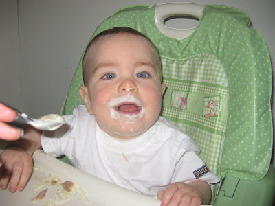 He loves grated cheese but it mostly ends up in his lap, same goes for the chicken. It took three introductions for him to finally like yogurt. As for the cottage cheese, no way no how. I'm discovering he's really picky about texture. He loves avocado but won't touch it with his fingers, same goes with cooked potatoes, carrots and peeled grapes. So I have to feed him that stuff if I want him to eat it. *eye roll*